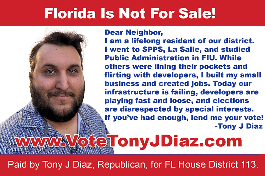 Contact Tony J. Diaz LET'S TALK ABOUT HOW WE CAN FIX FLORIDA TOGETHER! Text Me 786-774-2125 Email Me tonyjdiaz22@gmail.com MESSAGE TONY Sign up to stay up to date with Tony campaign